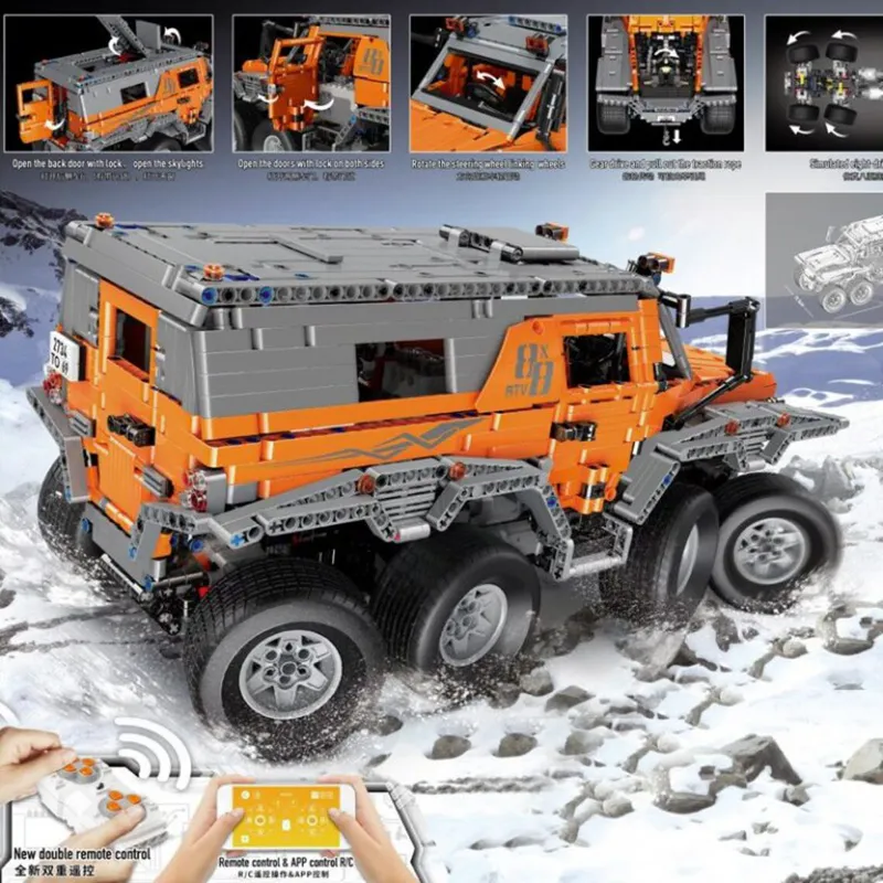 - It features low-pressure tires that allow it to float on water and navigate through deep snow and sand.