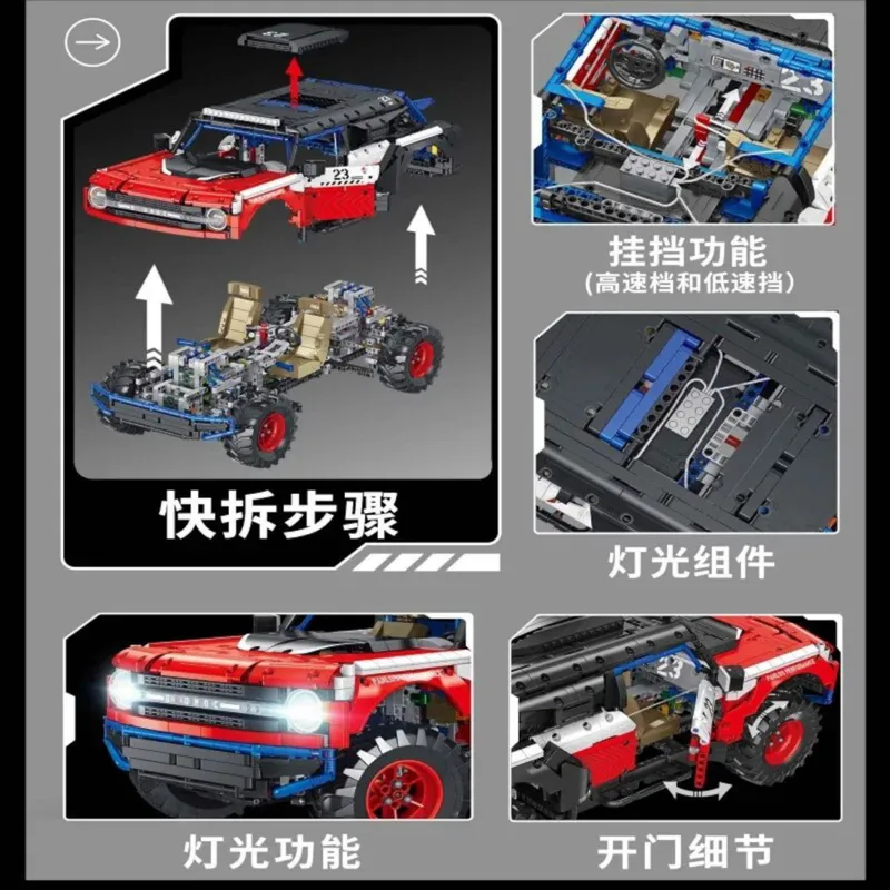 Prepare to embark on the ultimate building block adventure with the Brixbros Remote Control Ford Bronco SUV! This captivating 2,960-piece set is a true engineering marvel that will ignite the imagination of both parents and kids.