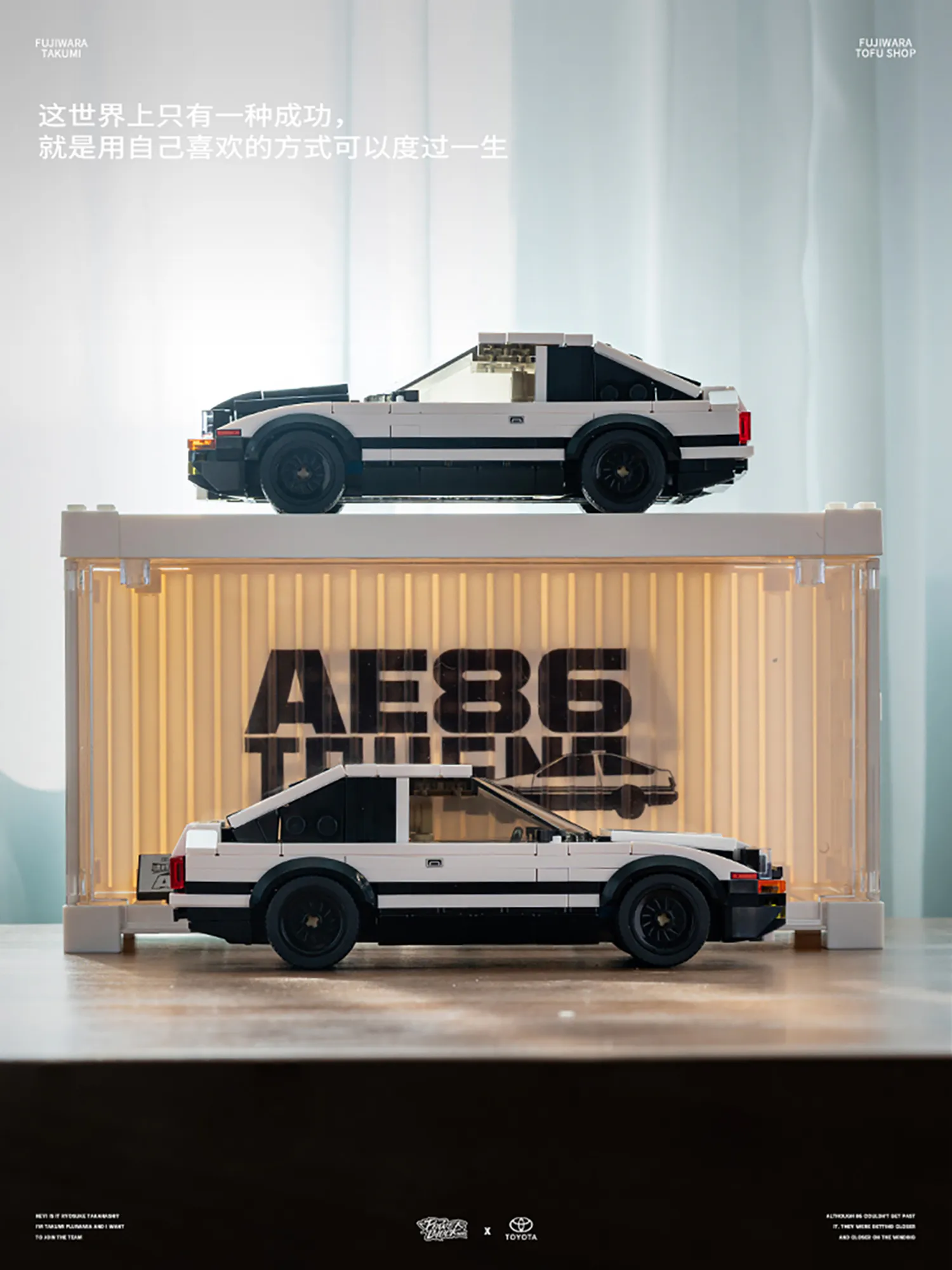 Initial D, the groundbreaking 1998 anime film adapted from Shuichi Shigeno's manga, revolutionized motorsports storytelling by showcasing downhill tofu delivery races in Japan's Gunma Prefecture. At its heart is the unassuming white Toyota AE86 Trueno, driven by high schooler Takumi, who masters the art of inertia drift without formal training. This PB8810 set from brixbros-store.com perfectly embodies that underdog spirit, featuring printed decals for authentic GT-APEX styling—no cheap stickers needed. Initial D's high-octane battles against Subaru Imprezas and Mazda RX-7s highlight the AE86's lightweight agility, a theme mirrored in this stable, 1/32 scale build that stands proudly with its included shipping container display case.